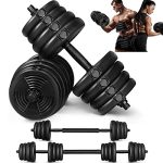 2-IN-1 DUMBBELL BARBELL SET: Dumbbells can be changed to a barbell within one minute through assemble two dumbbells together by connecting rod. With different fitness actions, it is equivalent to a push-up board, a back trainer, a sport equipment etc., just like a home gym to meet your diverse fitness needs