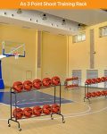 TILT BASKETBALL TRAINING STAND : Number of 5 pitches for a group with tilting top, The basketball rolls downward, suitable for 3 point shoot training. Flat design lower layer, also can store balls. A total of 10 standard basketballs can be stored.
