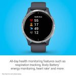 Garmin Venu, GPS Smartwatch with Bright Touchscreen Display, Features Music, Body Energy Monitoring, Animated Workouts, Pulse Ox Sensor and More, Silver with Dark Gray Band (Renewed)