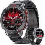 【Military Quality and Durability】This Military smartwatch has a titanium wrapped bezel that greatly enhances its durability, whether you’re hiking, long-distance off-road, boating by a river, or worse, it will hold up. The military men’s smartwatch is waterproof, shockproof and dustproof, and with its excellent performance, you can take it with you to explore the wilderness with impunity.